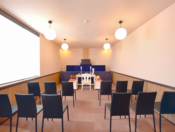 当ホールは、家族葬を中心に行えるコンパクトな式場ですが、ご家族でゆったり過ごせる控室を完備しており、葬儀前後の時間も安心してお過ごしいただけます。