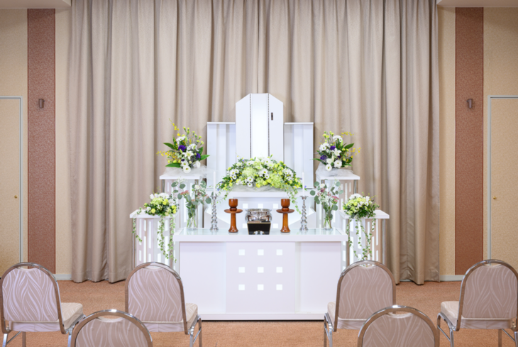 3名様からご利用できる家族葬ホール、50名様までご利用できる中ホール、最大250名様の収容が可能な大ホールがございます。ご家族やご親戚、親しい方たちだけでの葬儀に最適。