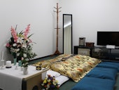 木目と琉球畳を活用したリビングルームはモダンで落ち着いた雰囲気で、バスルームも併設しており、ご宿泊される方にも快適にご利用いただけます。