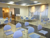 2階が100名のお席をご用意できる式場と会食室、1階は10名の小規模なご葬儀のホールと親族控え室を完備しております。