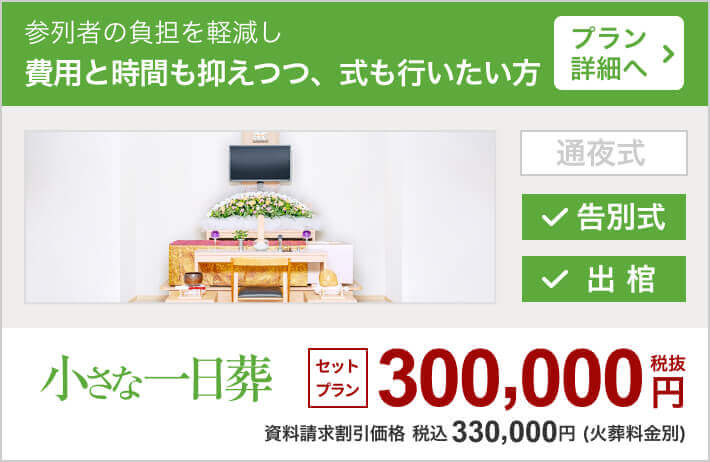 (小さな一日葬・小さな家族葬・小さな一般葬:資料請求10万円割引 小さなお別れ葬・小さな火葬式:資料請求5万円割引)